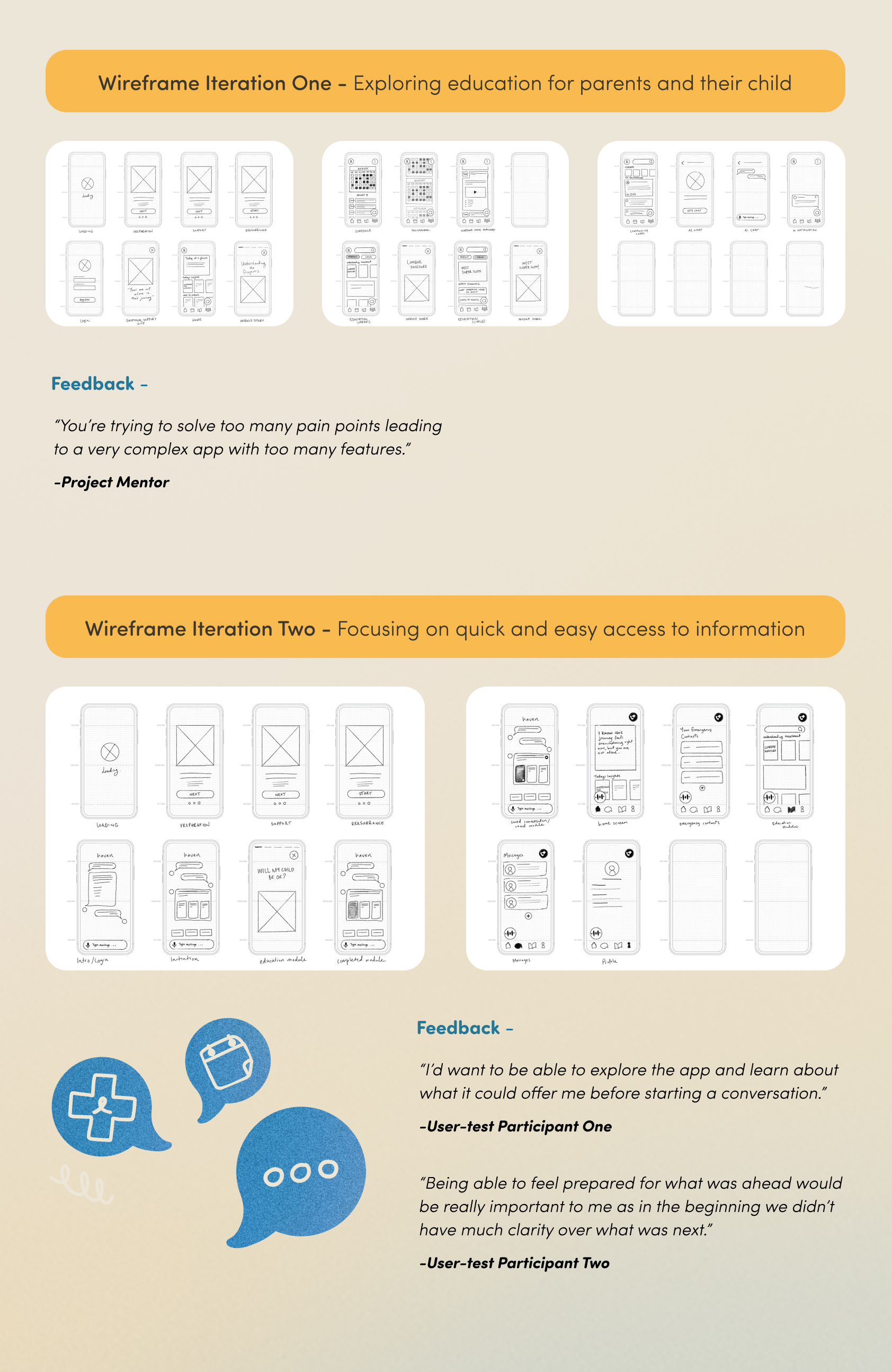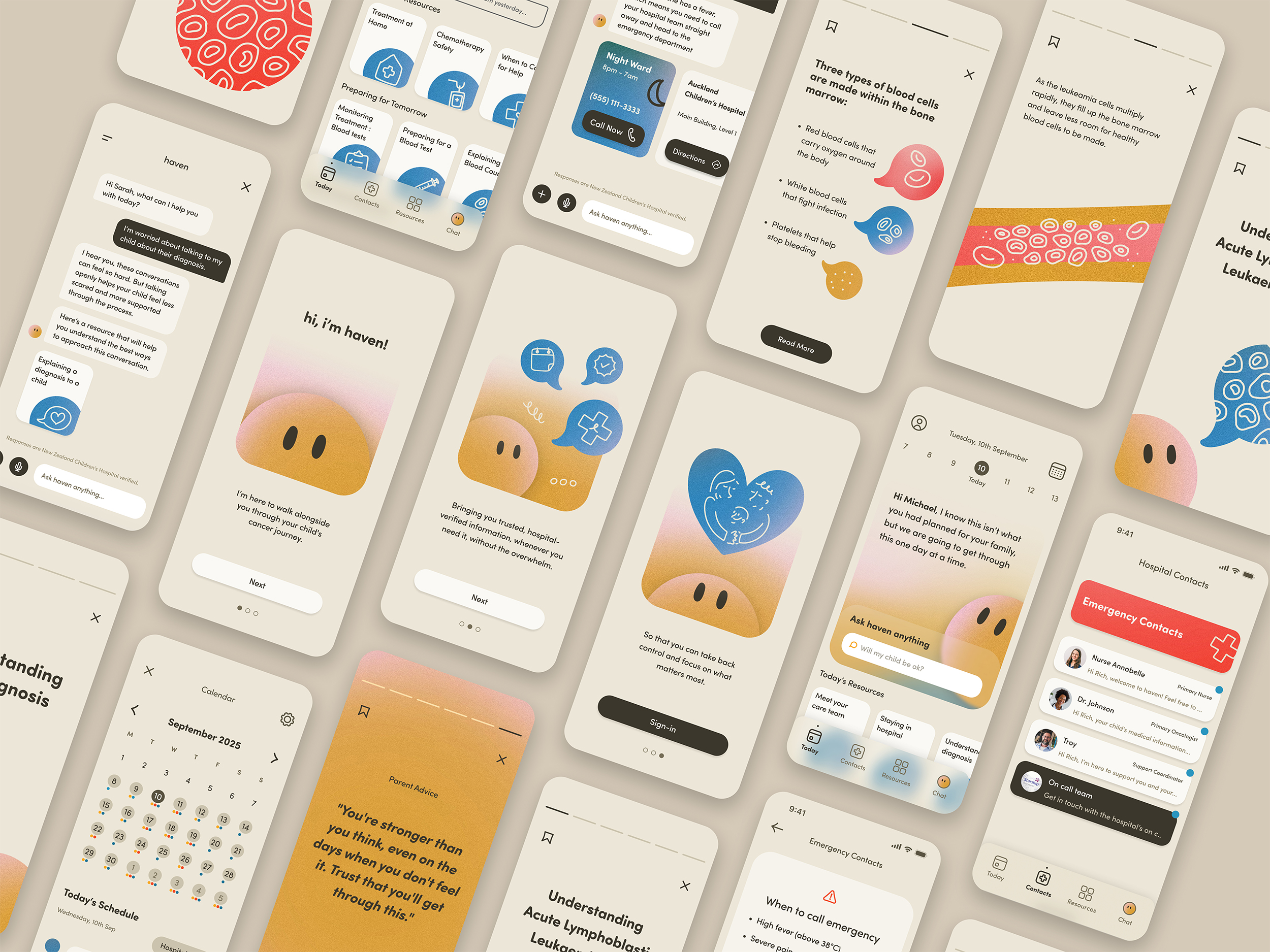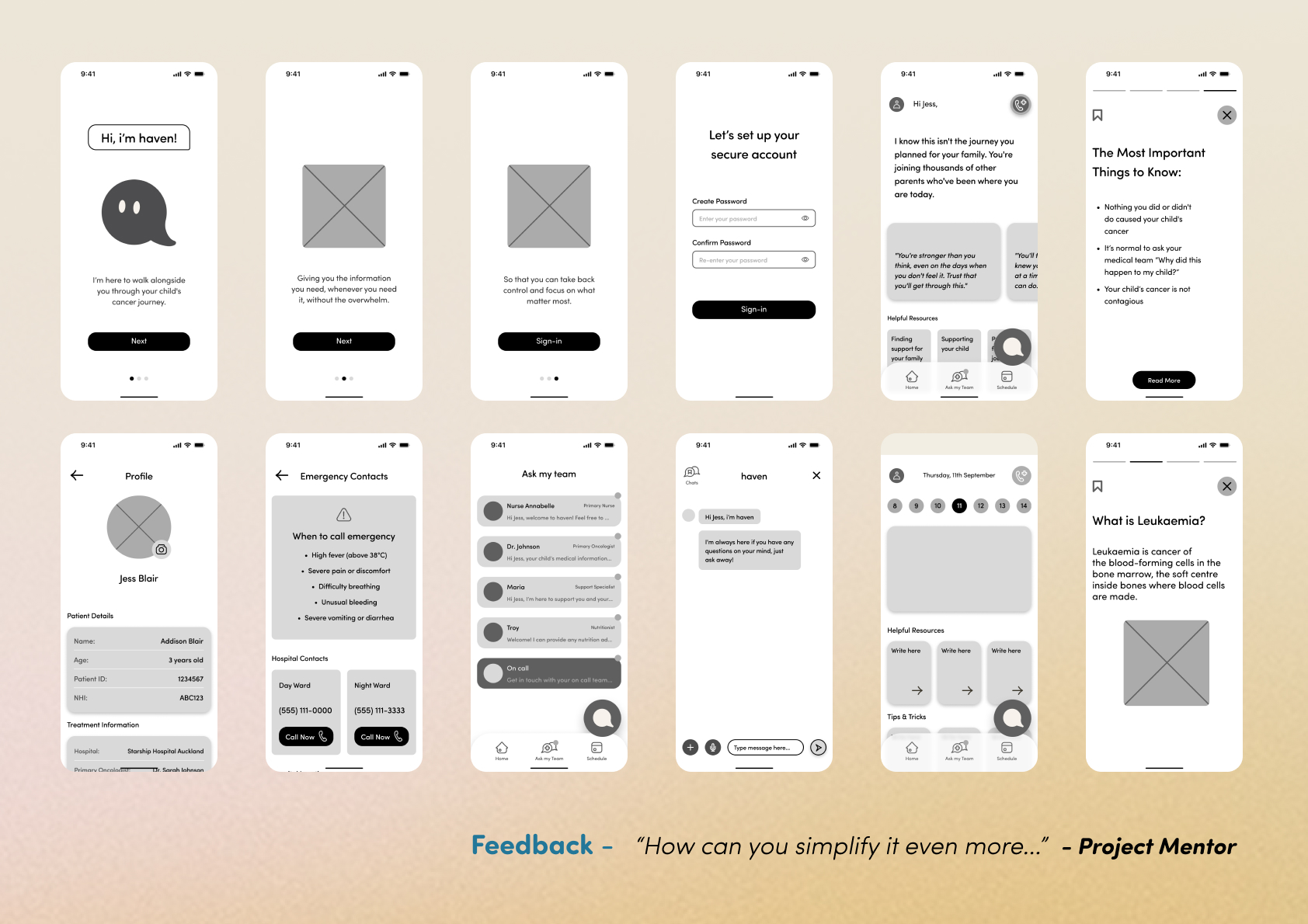 The creation of Haven was guided by two close friends of mine who had lived through this experience, along with insights from an oncology nurse and a support worker who witness these challenges every day. Through listening to their stories and understanding needs from multiple perspectives, it became clear that constant questions between appointments, uncertainty about what comes next, and fear of making mistakes during home care all pointed to a gap in support. The oncology nurse confirmed she often spends valuable time answering non-emergency questions that could be resolved instantly if the right information were available when parents needed it.