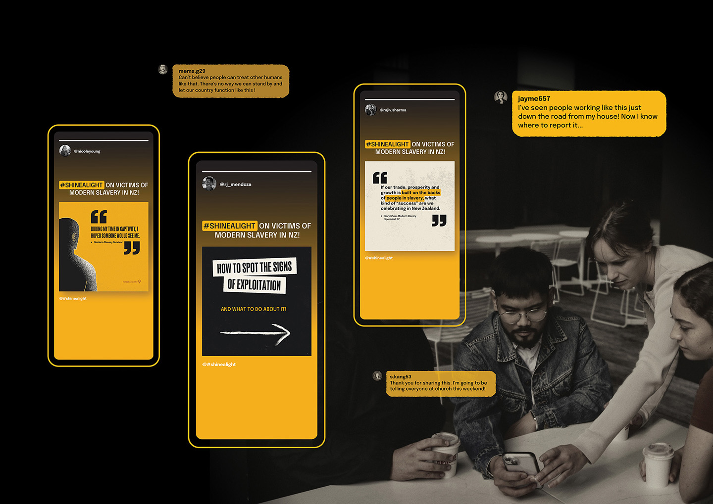The #SHINEALIGHT campaign uncovers the hidden reality of modern slavery in Aotearoa, exposing the widespread exploitation of vulnerable migrants and challenging the individuals who exploit them. It aims to empower fellow migrants who have found safety and success in Aotearoa to become allies to those affected and help get their voices heard.
